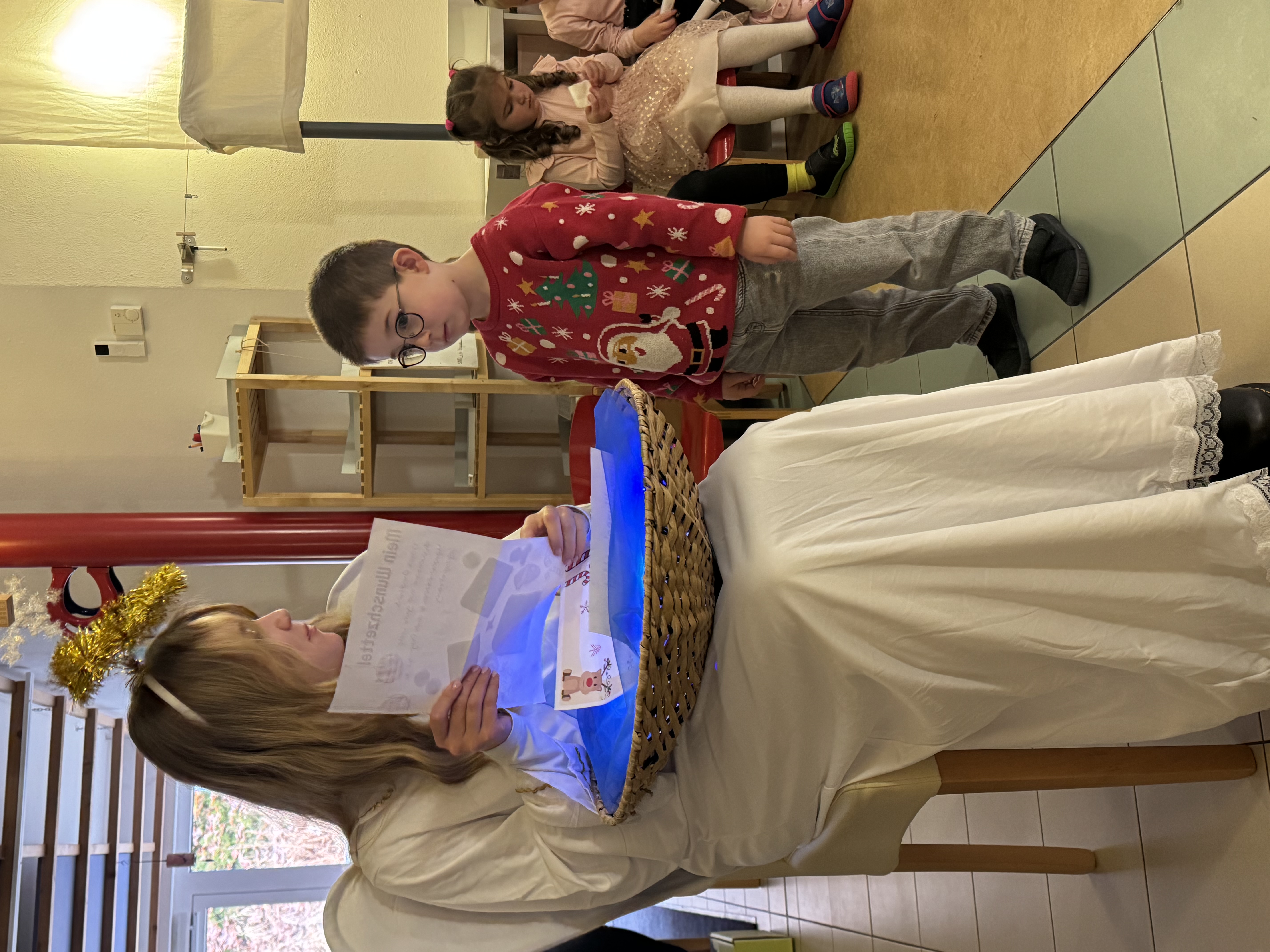 Doch bevor es eine kleine Bescherung gab, präsentierten die Kinder dem Christkind in den drei Einrichtungen festliche Weihnachtslieder und besinnliche Weihnachtsgedichte. Außerdem verriet der ein oder andere dem Christkind, was in diesem Jahr auf seinem Wunschzettel steht.